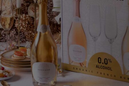 An organic French alcohol-free sparkling wine “bubbly” made from de-alcoholized Chardonnay from France.